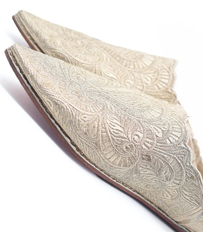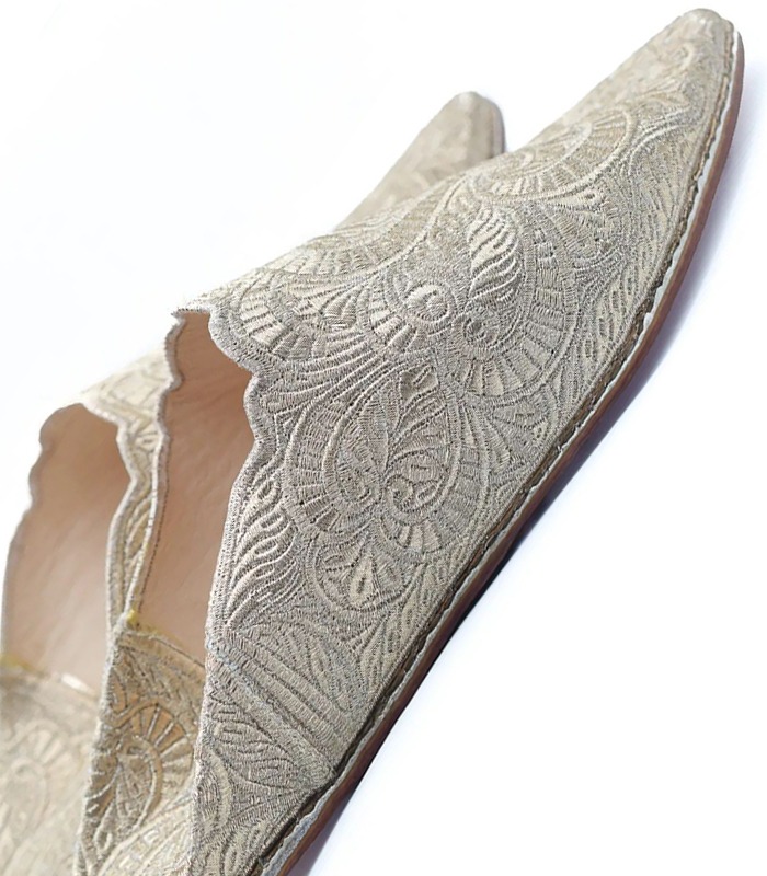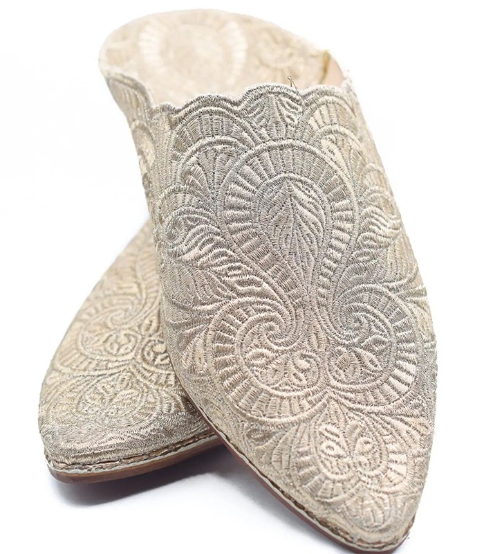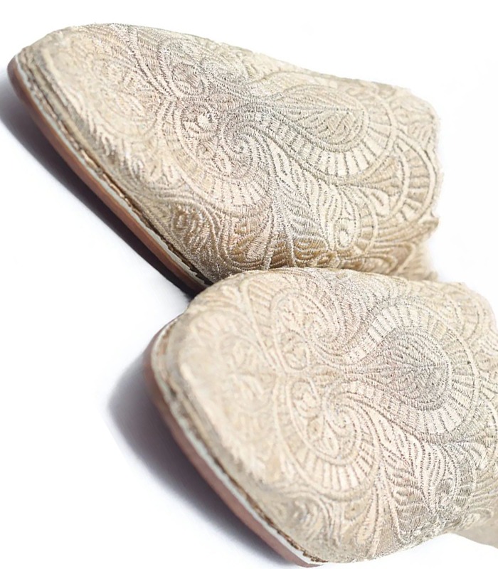 شربيل الزفاف المغربي الرائع بفاس. الجزء الداخلي 100% والنعل من الجلد ومغطى بالكامل بخيط ذهبي أو فضي من الخارج (الصقلي). في تقاليد الأعراس المغربية، كان يجب أن تكون هذه النعال جزءًا من مجموعة من الهدايا التي يقدمها الزوج للعروس.